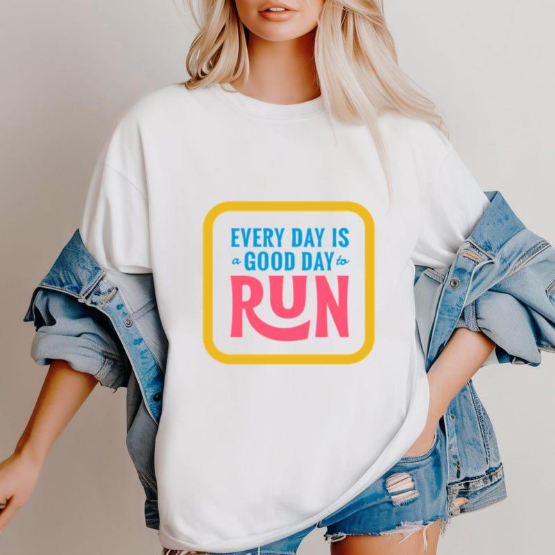 Your everyday go-to Good Day To Run Flat Badge T Shirt T Shirt , soft, comfy, and easy to love. Makes a sweet little gift too.