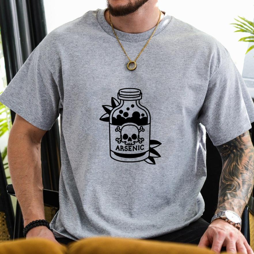 Comfy, casual, and always in style, this Vintage Poison Bottle Illustration With Skull And Arsenic Label T-Shirt T-shirt is perfect for daily wear or easy gifting.